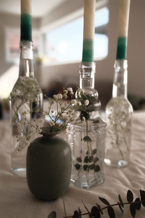 - Sets mit Rhythmus: Tauche mehrere Kerzen unterschiedlich tief – das wirkt bewusst gestaltet, ohne zu streng zu sein.